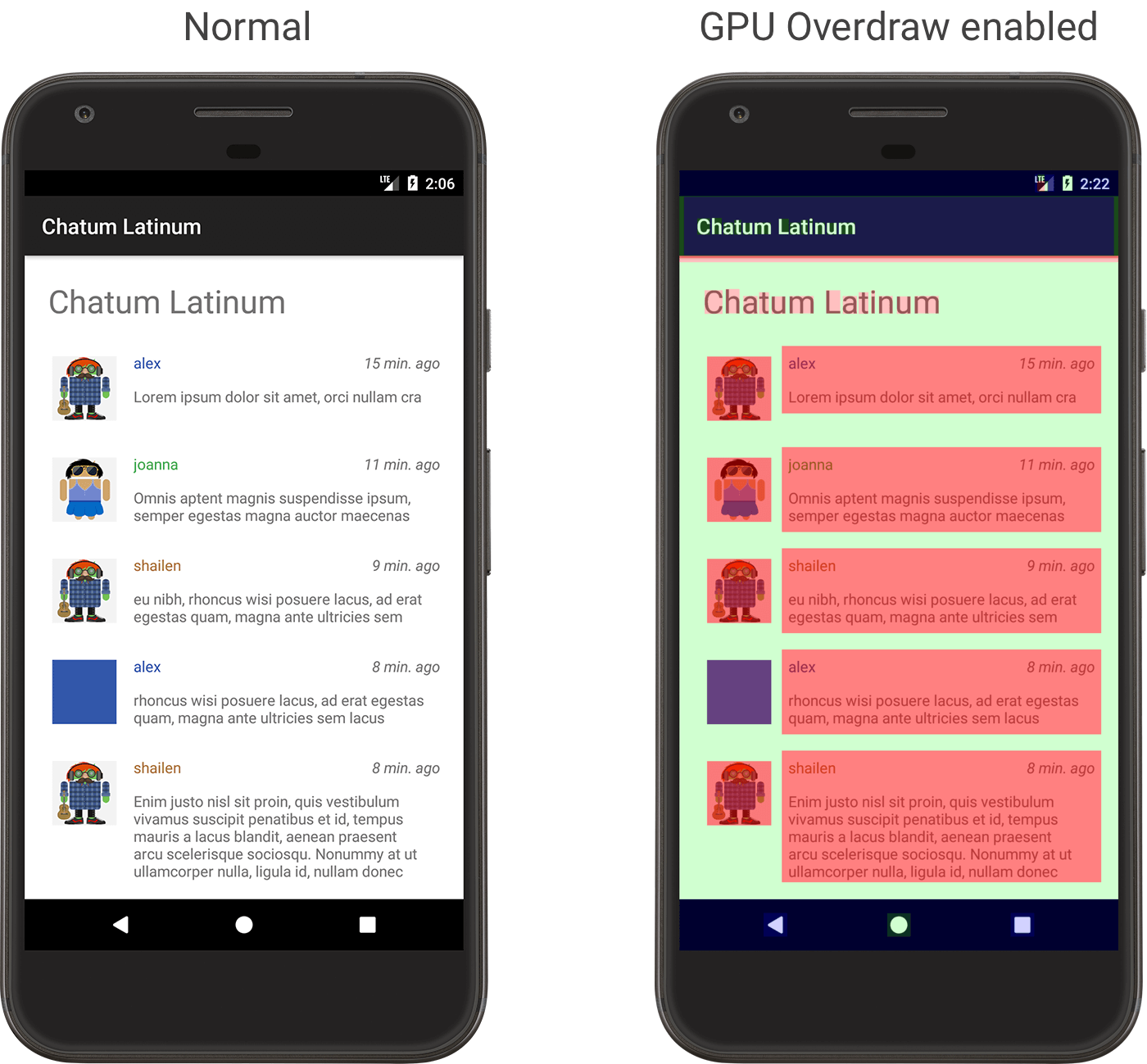 在Android 4.2,系统增加了检测绘制过度工具,具体的使用方法可以参考《检查GPU渲染速度和绘制过度》。