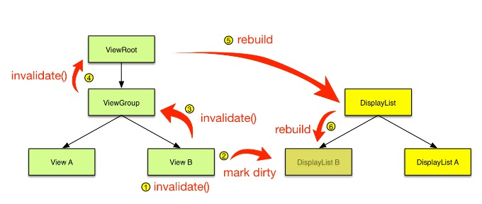 当需要重绘时,仅仅只需要重绘一个View的DisplayList,而不是像软件绘制那样需要向上递归。这样可以大大减少绘图的操作数量,因而提高了渲染效率。