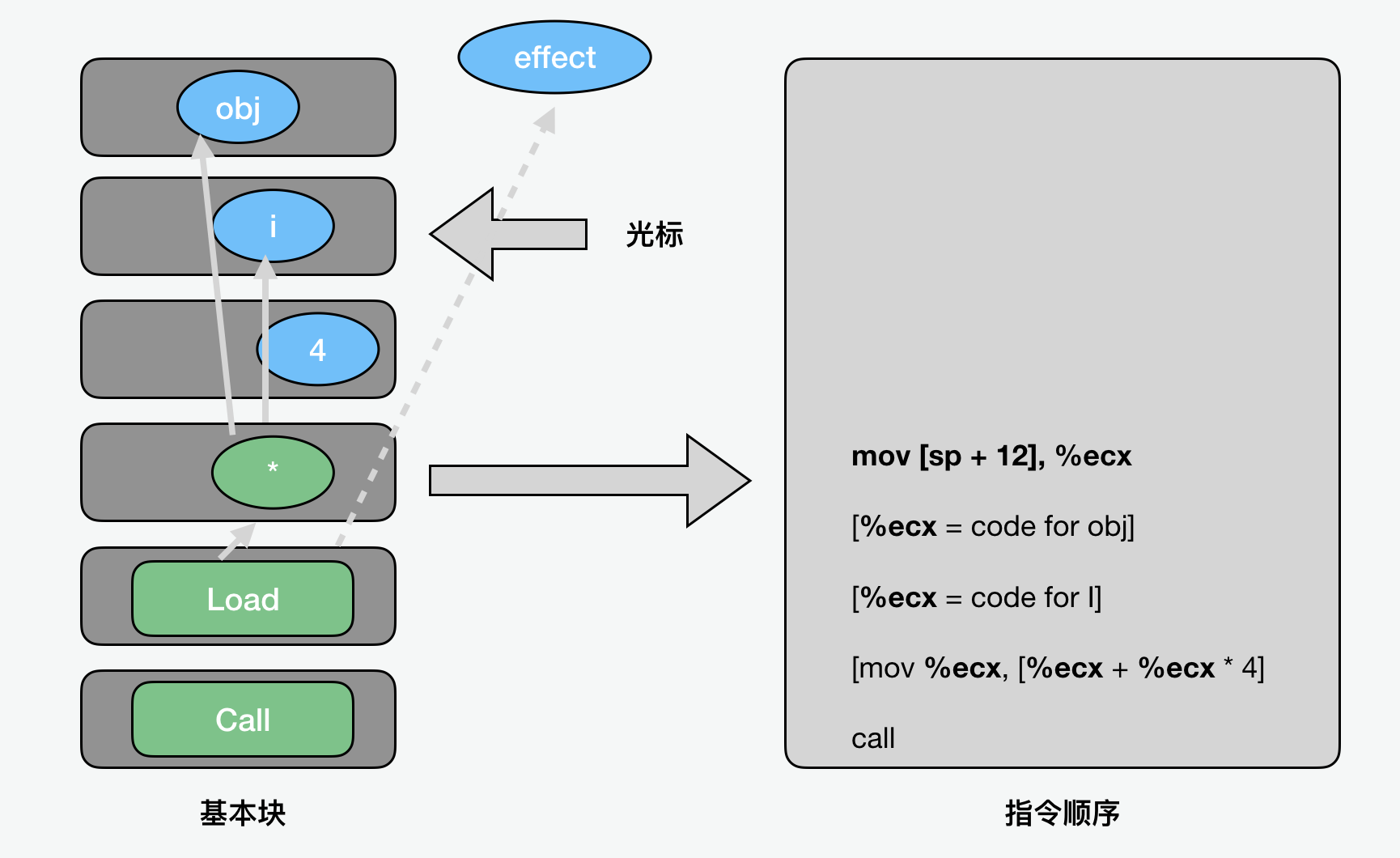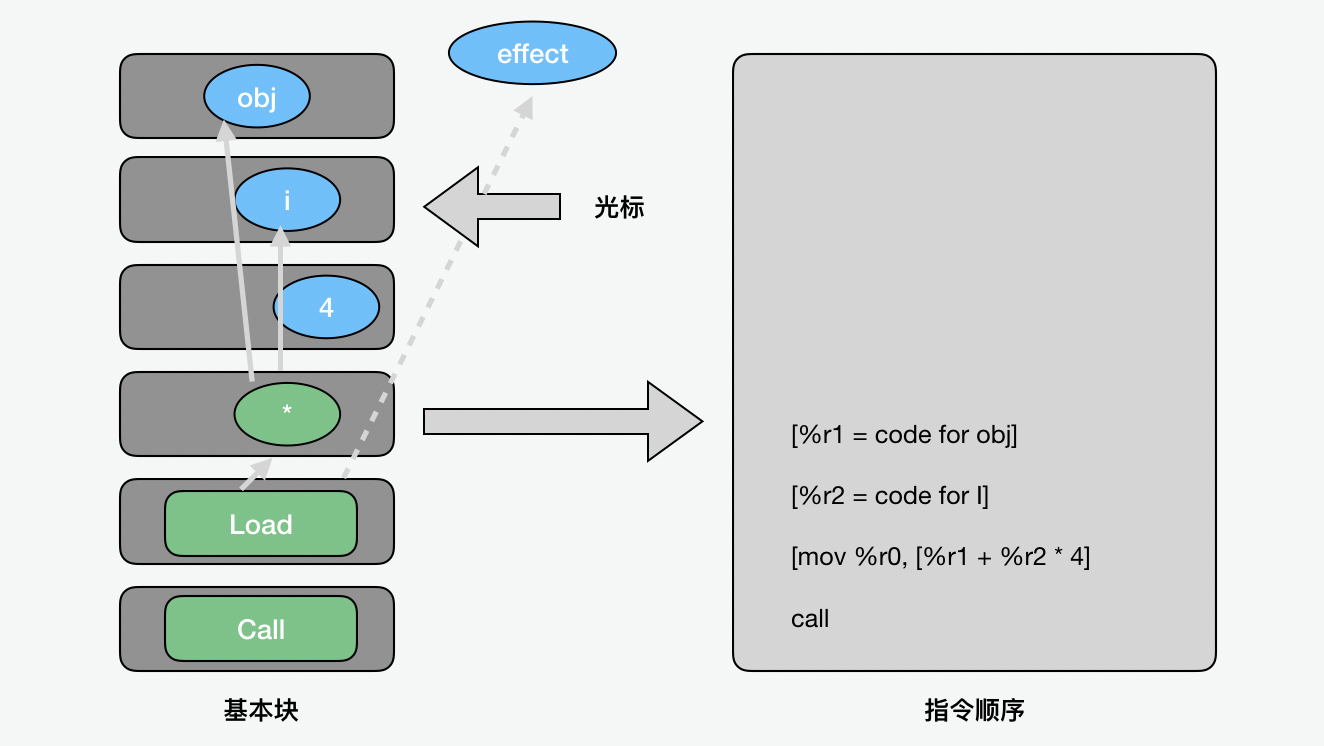但是实际上指令选择的顺序,是从程序控制图中相反的顺序,也就是从基本块儿中自下而上地移动标的位置。