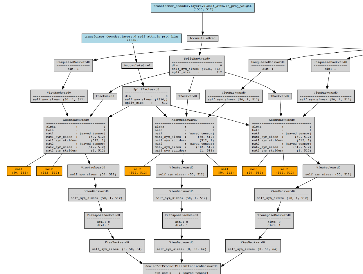 我们选中其中一个TransformerDecoderLayer层,右侧会展示这一层的详细信息,可以看到具体的实现类是torch.nn.modules.transformer.TransformerDecoderLayer,包含下面这些组件: