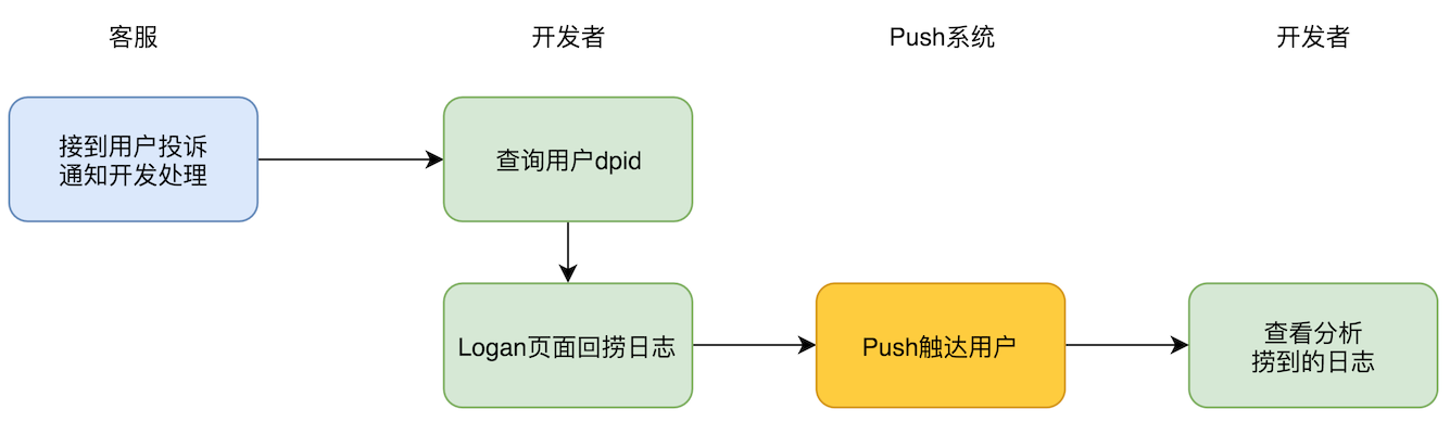 - 主动上报。在用户反馈问题、出现崩溃等一些预设场景,主动上报日志。