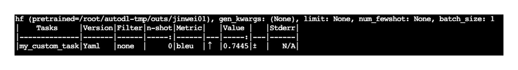 为什么我们要自己实现bleu算法呢?这就是私有task项目中的第四个注意点,也是工程经验,如果你在配置文件中写默认的bleu评估配置,评估程序会一直报错,我们甚至去修改了框架的源代码都无法解决。