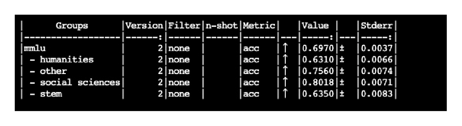 这套流程可以帮助你快速评估微调后的模型在 MMLU 数据集上的表现,而不需要进行复杂的代码修改。