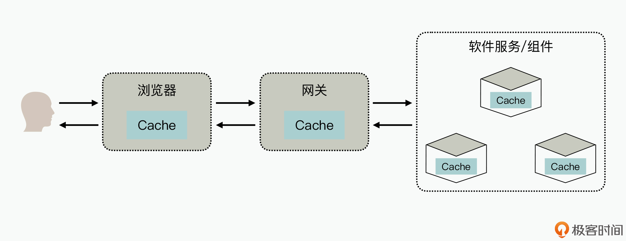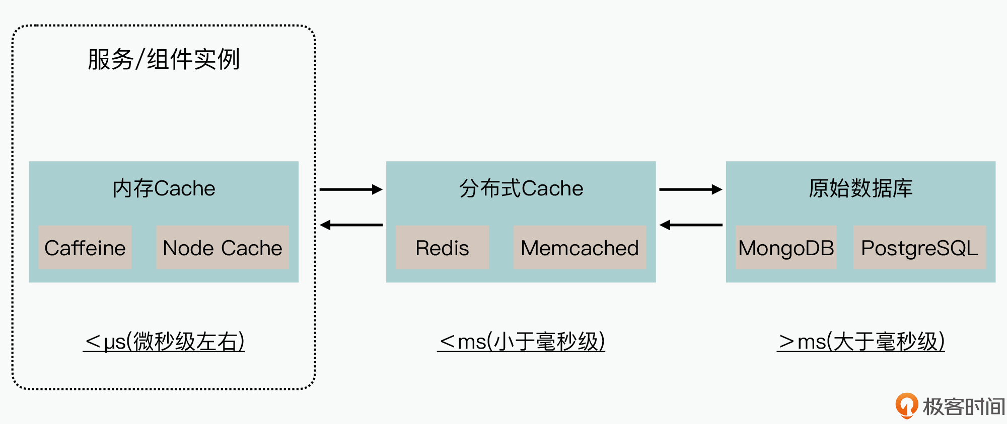 所以,你在做缓存设计时,关注点应该放到不同的数据种类,以及不同层级缓存的性能评估模型上,而不是只关注数据库。只有这样,你才能设计出更好、更优的性能缓存方案。