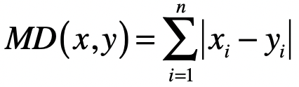 推广到$n$维空间,曼哈顿距离的计算公式为: