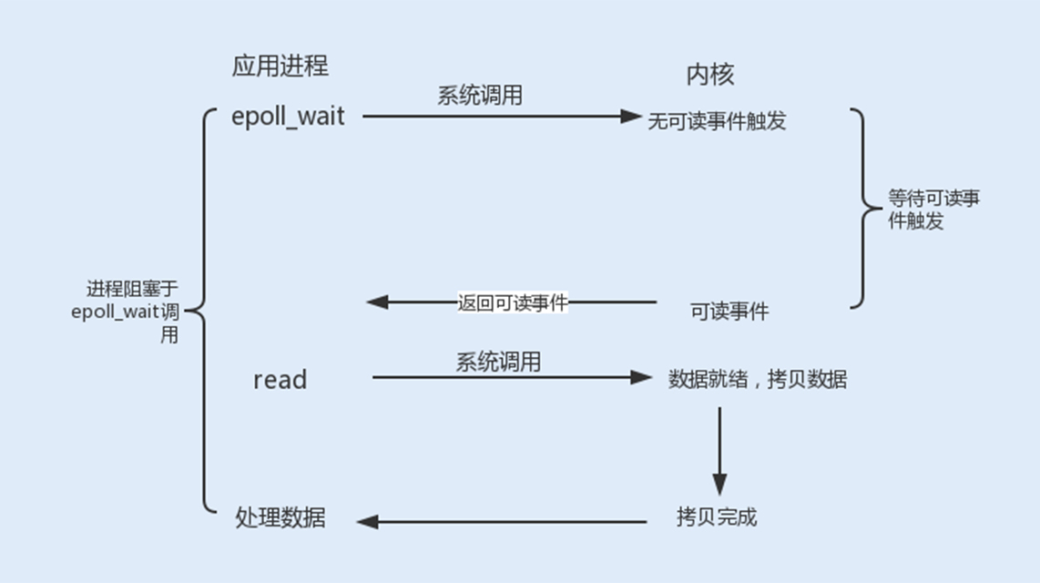一旦某个文件描述符就绪时,内核会采用类似callback的回调机制,迅速激活这个文件描述符,当进程调用epoll_wait()时便得到通知,之后进程将完成相关I/O操作。