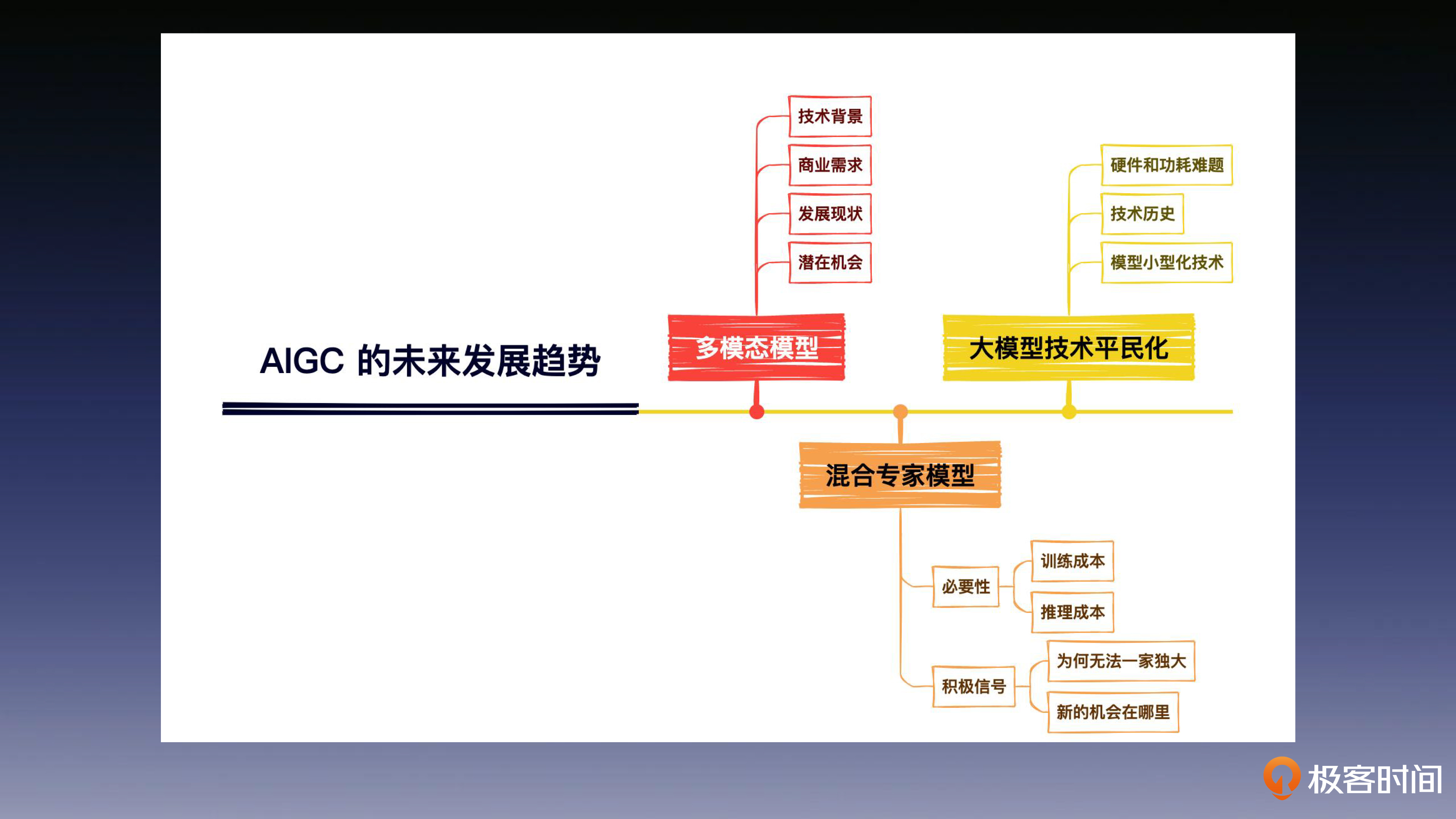 今天,我将结合自己的观察,与你分享人工智能的发展趋势,我总结出了以下几个关键趋势,分别是多模态、混合专家模型和模型小型化。