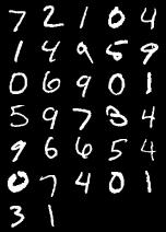 MNIST的测试集中的32张图片,如下图所示,这里我要特别说明一下,因为MNIST的尺寸为28x28,所以测试集里的手写数字图片像素都比较低,但这并不影响咱们动手实践。你可以参照我给到的示范,自己动手试试看。