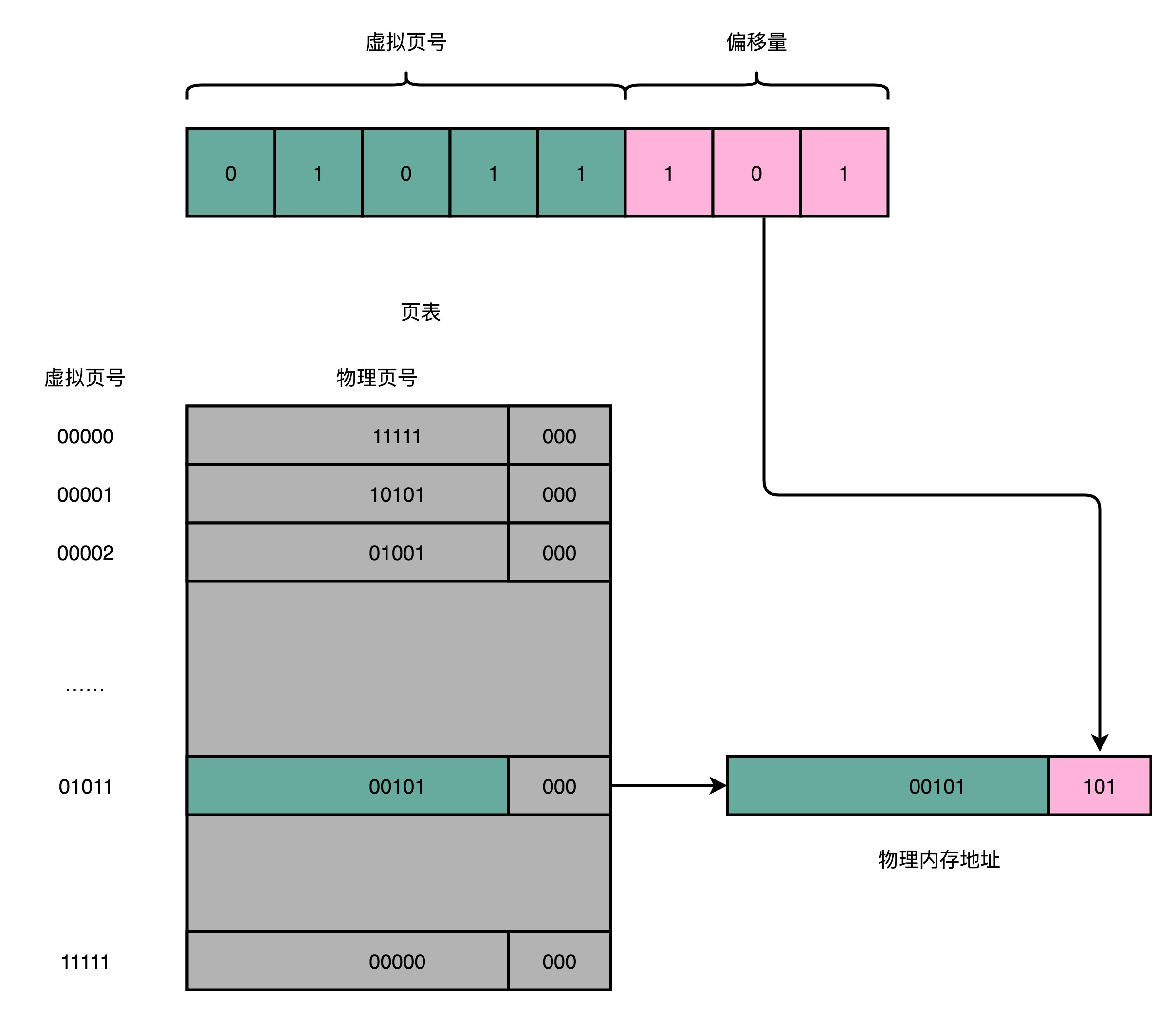 总结一下,对于一个内存地址转换,其实就是这样三个步骤: