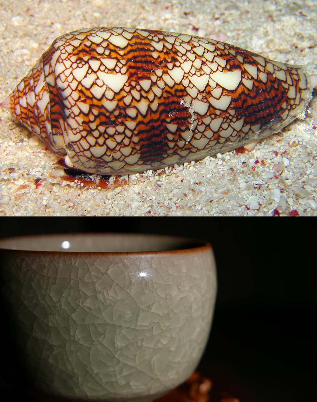 混沌是自然界更为常见的一种规律。混沌貌似无序,但是还没有达到完全无序的状况(特别是在某种条件约束下的混沌)。某些贝壳表面貌似无序的花纹和烧制后带有碎纹的瓷器有异曲同工之妙。