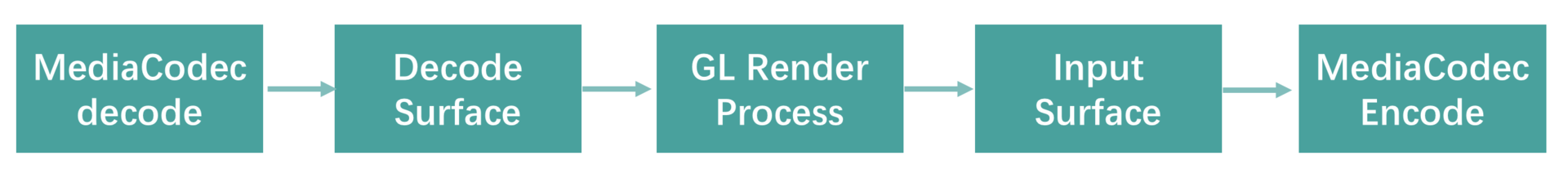 我们将解码之后的渲染交给OpenGL,然后输出到编码器的InputSurface上,来实现整套编码流程。