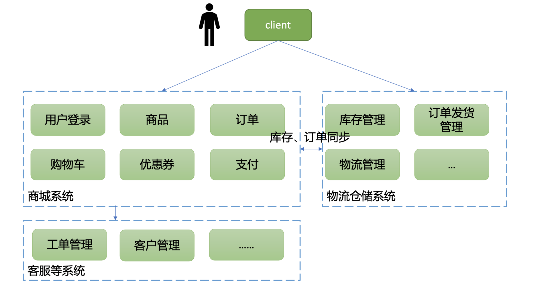 它是对各个功能模块进行更细立度的拆分,比如商城系统模块可以拆分成:
