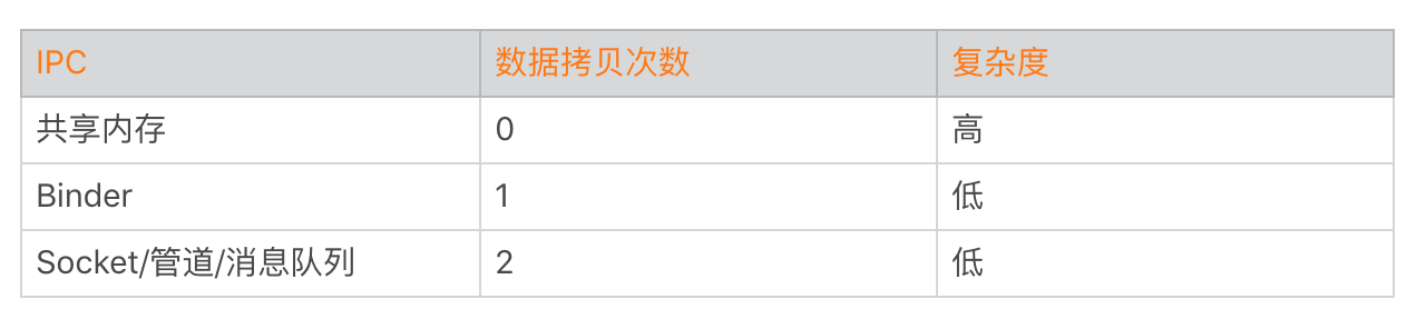 利用mmap,Binder在跨进程通信只需要一次数据拷贝,比传统的Socket、管道等跨进程通信方式会少一次数据拷贝过程。