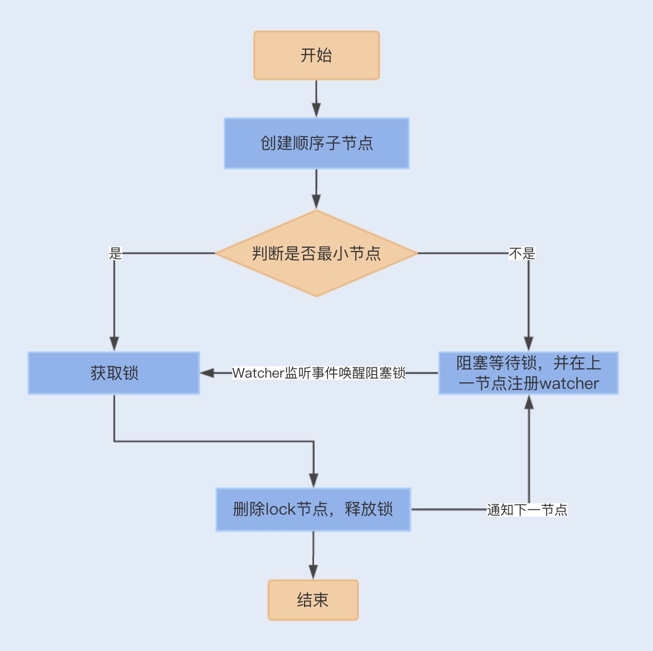 如果不是最小节点,则阻塞等待锁,并且获得该节点的上一顺序节点,为其注册监听事件,等待节点对应的操作获得锁。