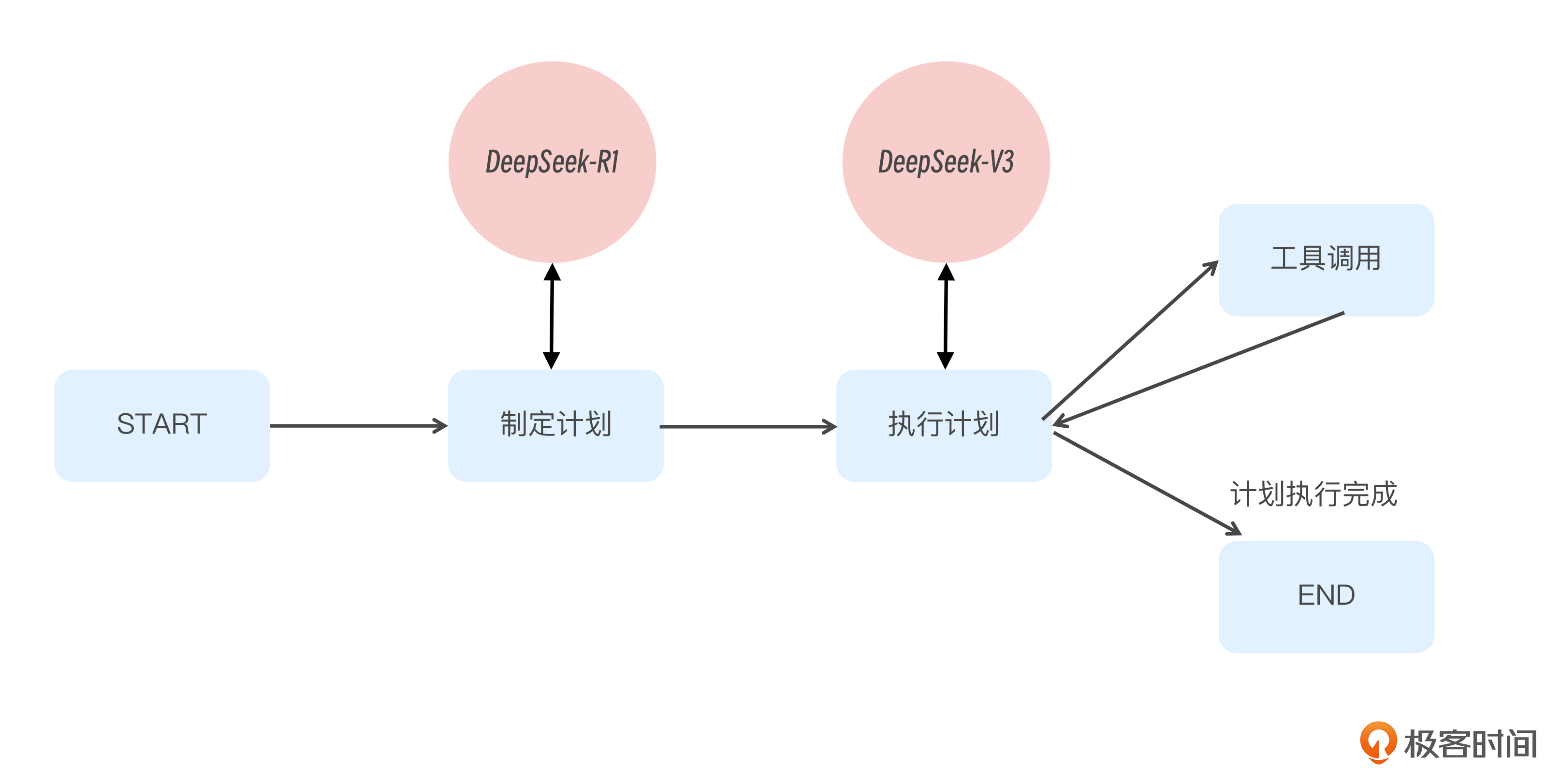 工具准备好后,就开始进入到今天这节课的重点,那就是 Agent 的另一种设计模式——计划模式的学习,这也是整个课程拔高的部分。计划模式并不抽象,如果你能熟练掌握 Function Calling 以及 ReAct Agent 的原理,理解这个模式就很容易了。