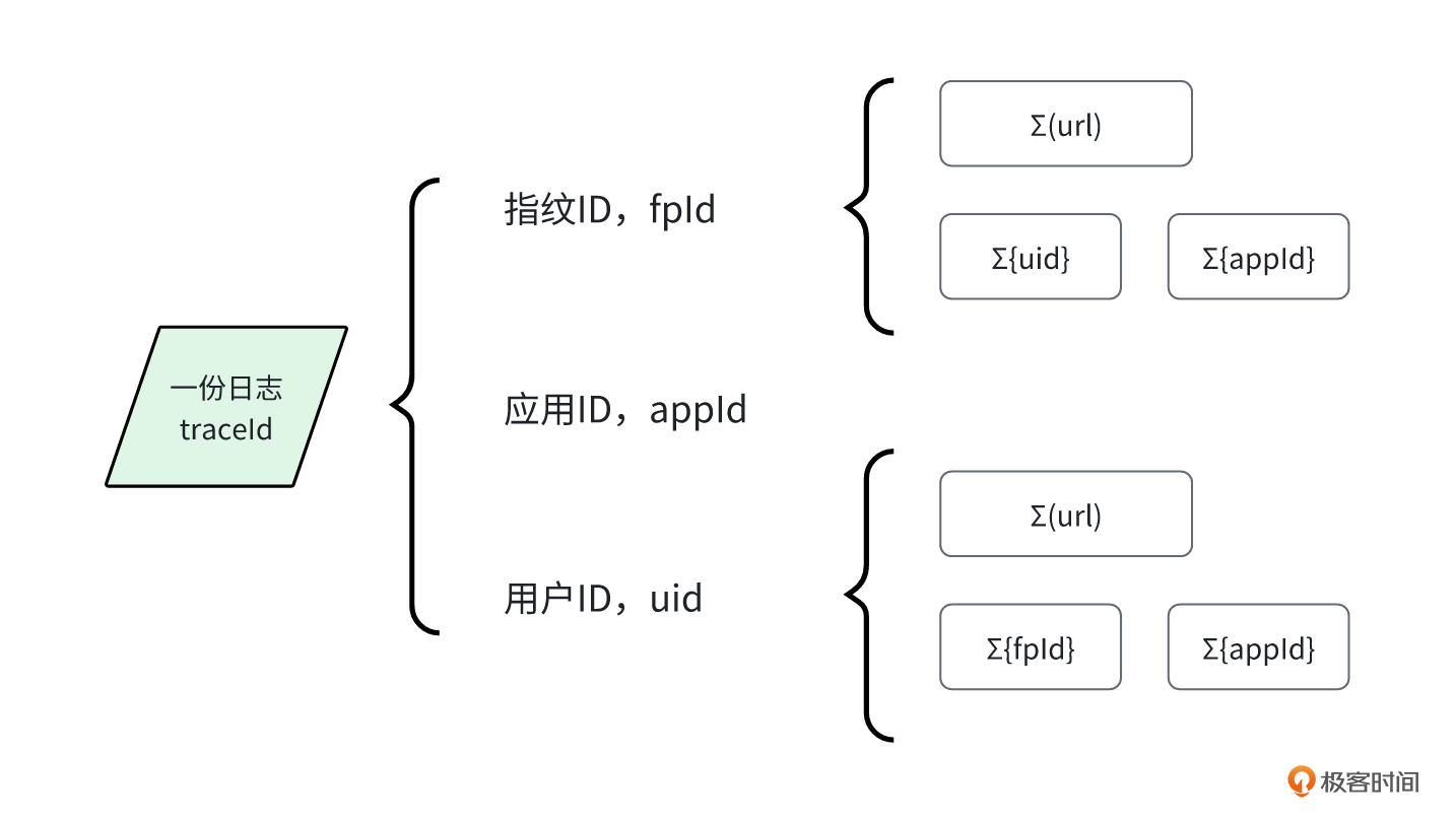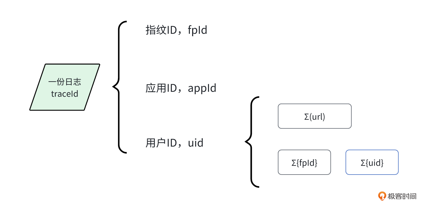 traceId 是日志ID,通过uuid生成,基本上接近唯一值。通过日志数据,我们能查询到 fpId 和 appId ,如果是已登录的用户,还会有 uid 。