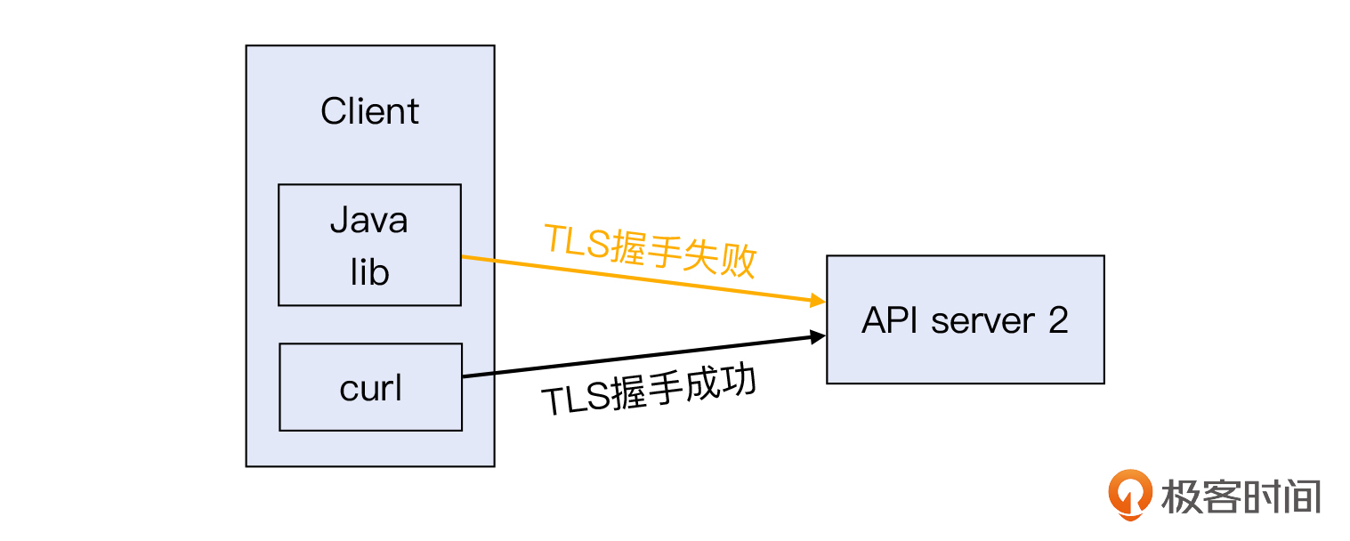 我们曾经遇到的一个例子就是这样。当时,我们有一个应用需要访问Kubernetes集群的API server。因为我们有很多个集群,所以相应的API server也有很多个。这个问题是,从同一台客户端去访问API server 1是可以的,但访问API server 2就不行。进而发现,失败原因就是TLS握手失败。