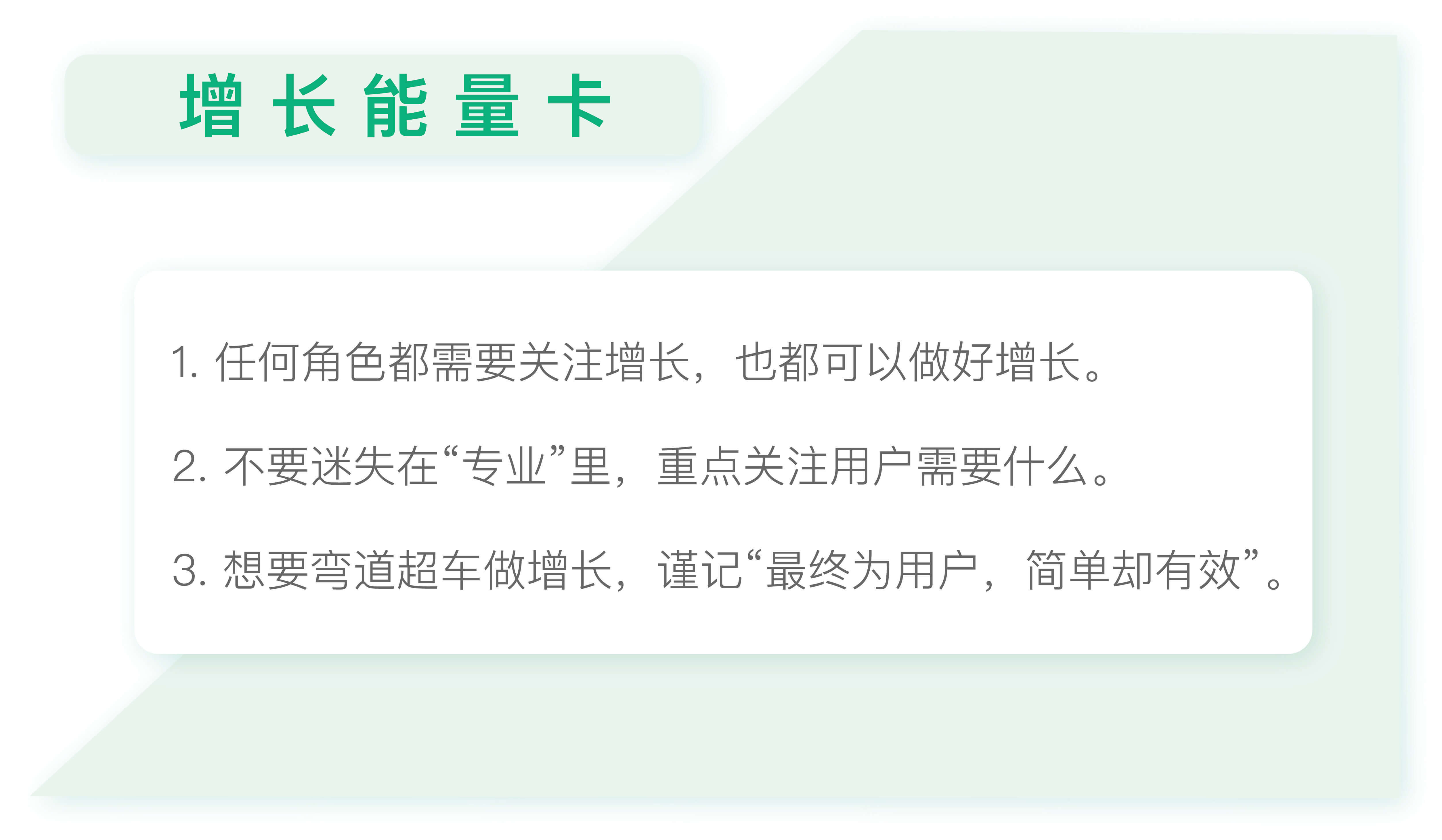 在讲具体方法之前,今天我要先跟你谈谈做增长最重要的理念——“最终为用户,简单却有效”。