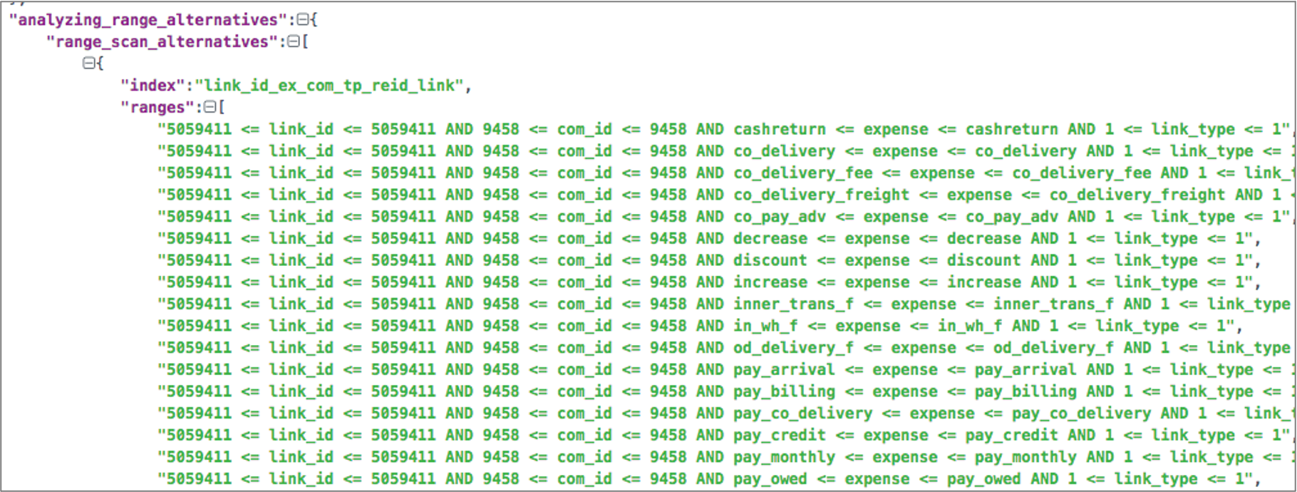 SELECT * FROM t_exp t WHERE t.link_id in (x,x,x,…) and t.com_id = xx and t.expense in (x,x,x) and t.link_type= 1 and ledger_status= 1 AND status = 1