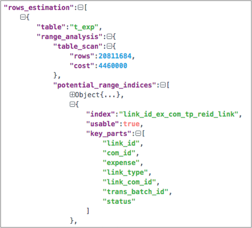 *************************** 1. row *************************** id: 1 select_type: SIMPLE table: mysql_stat type: range possible_keys: idx_tenantid_instname_checktime key: idx_tenantid_instname_checktime key_len: 41 ref: NULL rows: 468284 Extra: Using index condition
