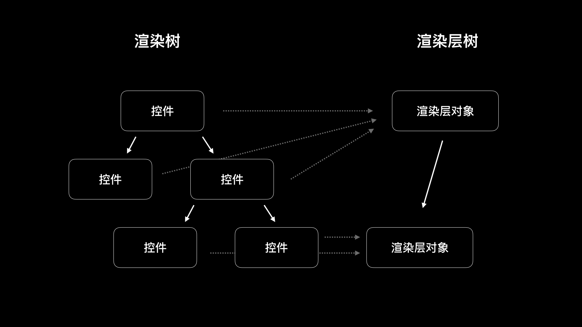 控件、渲染树、渲染层树之间的关系,如下图所示:
