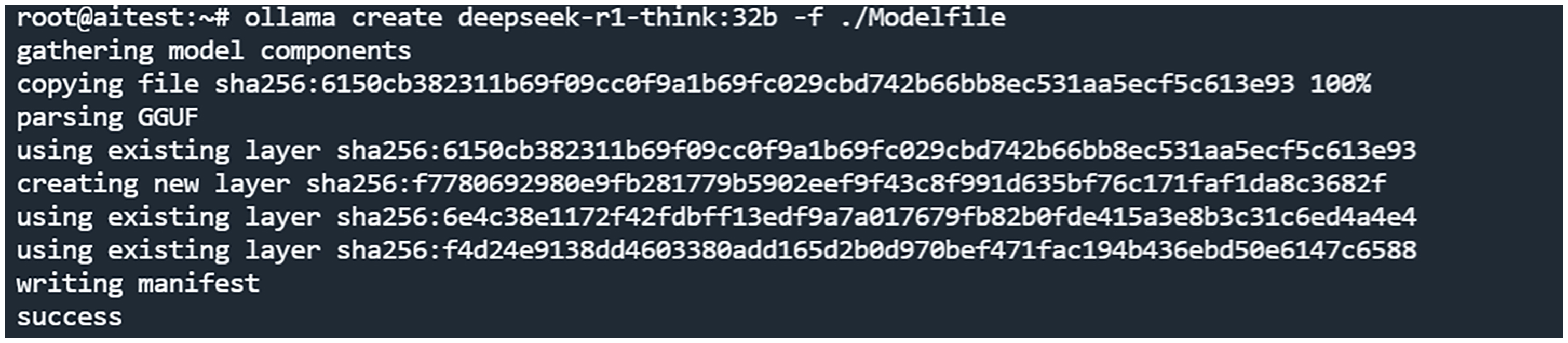 1 | ollama create deepseek-r1-think:32b -f ./Modelfile |