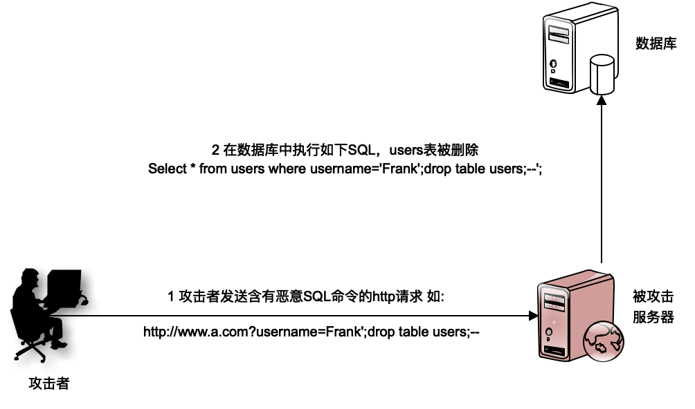 1 | http://www.a.com?username=Frank';drop table users;-- |