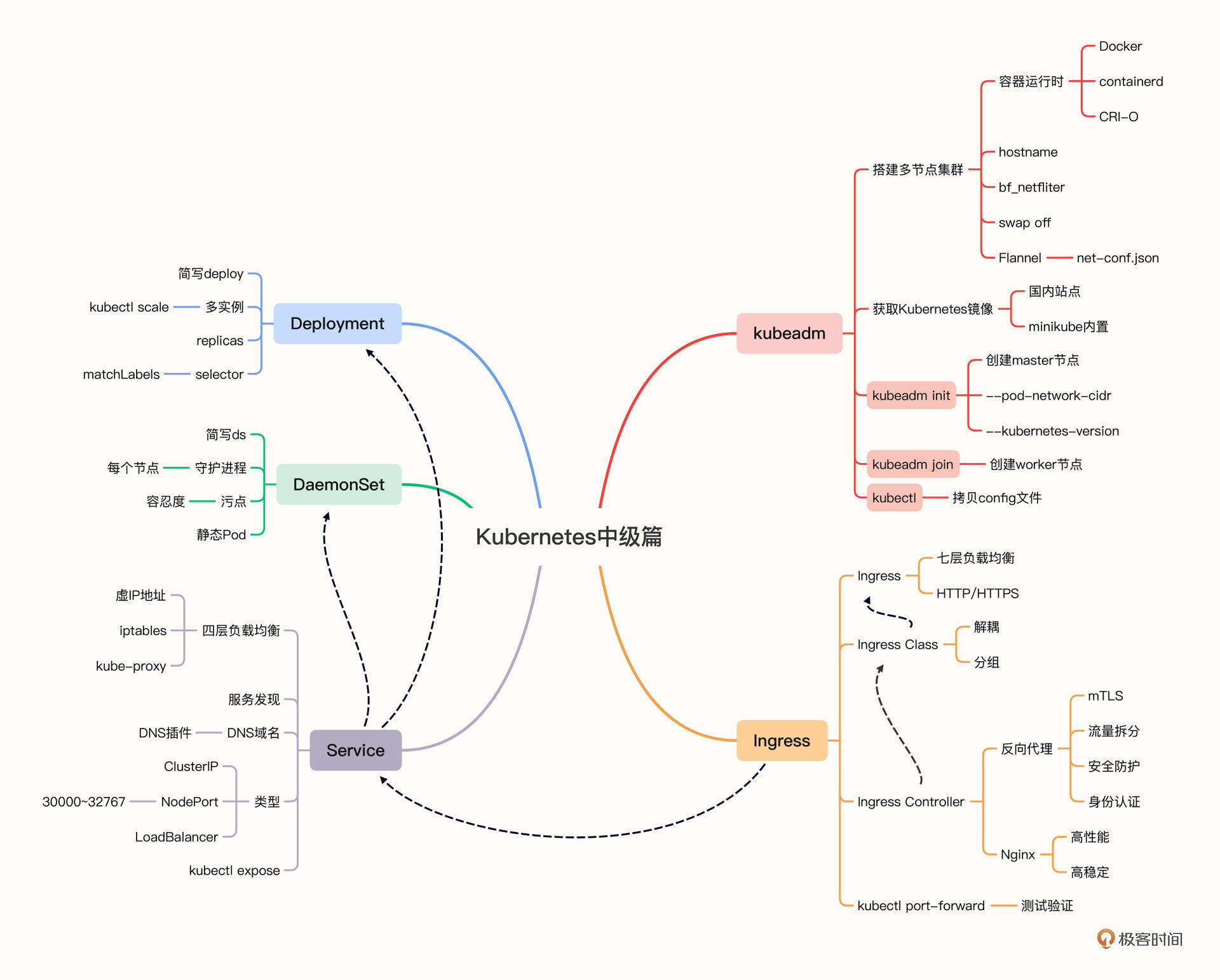 在这个更接近实际生产环境的Kubernetes集群里,我们学习了Deployment、DaemonSet、Service、Ingress、Ingress Controller等API对象。