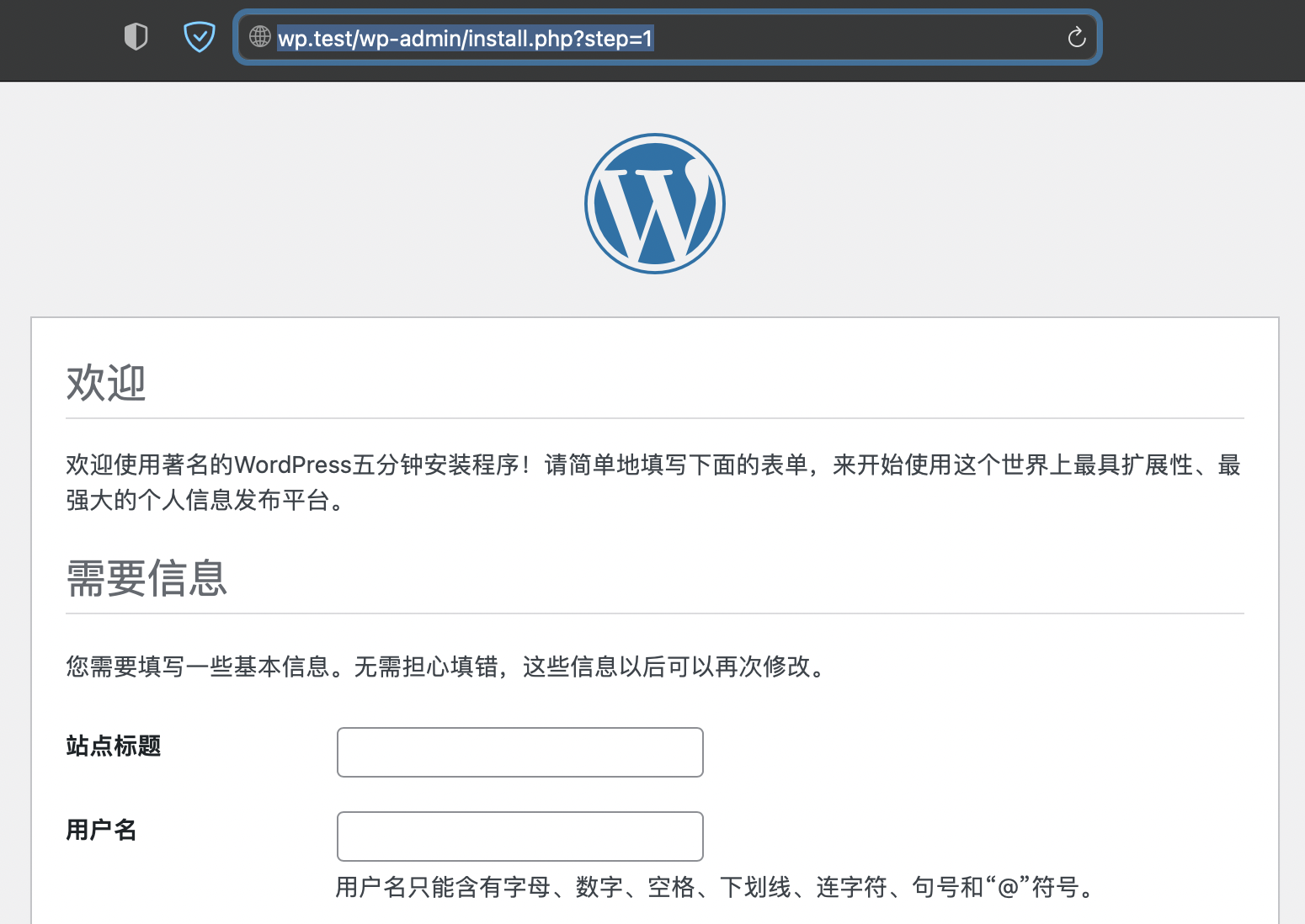 有了域名解析,在浏览器里你就不必使用IP地址,直接用域名“wp.test”走Ingress Controller就能访问我们的WordPress网站了: