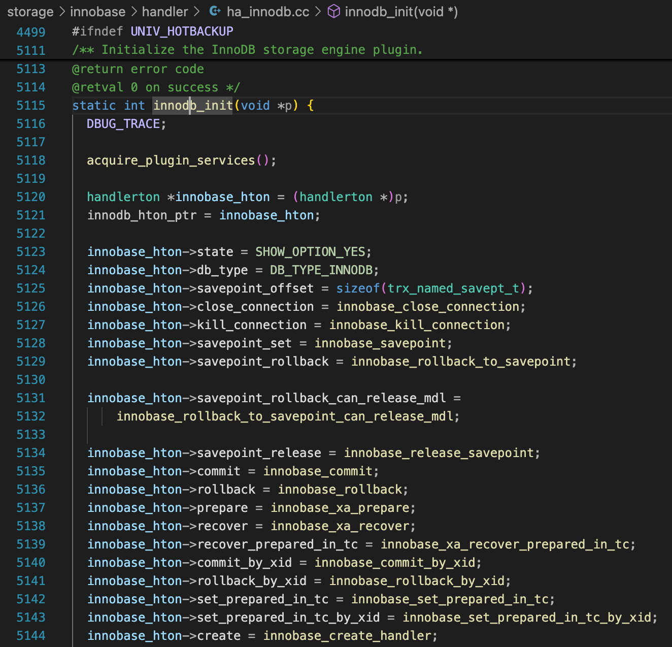 函数innodb_init中设置了一系列给server层调用的函数。加载InnoDB插件时调用这个函数。