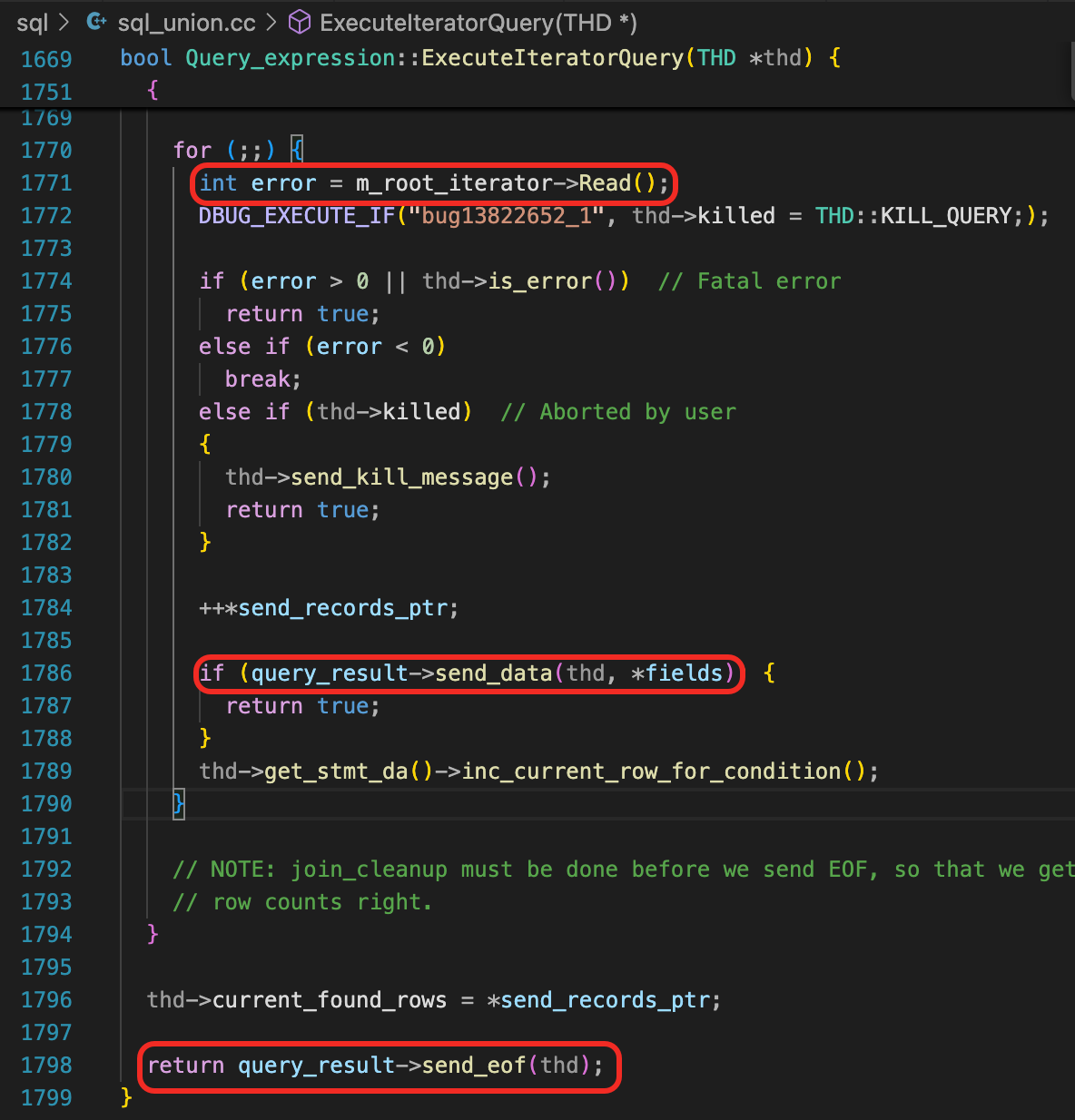 经过一些分析,发现sql_union.cc的1771行可能有我们感兴趣的代码。