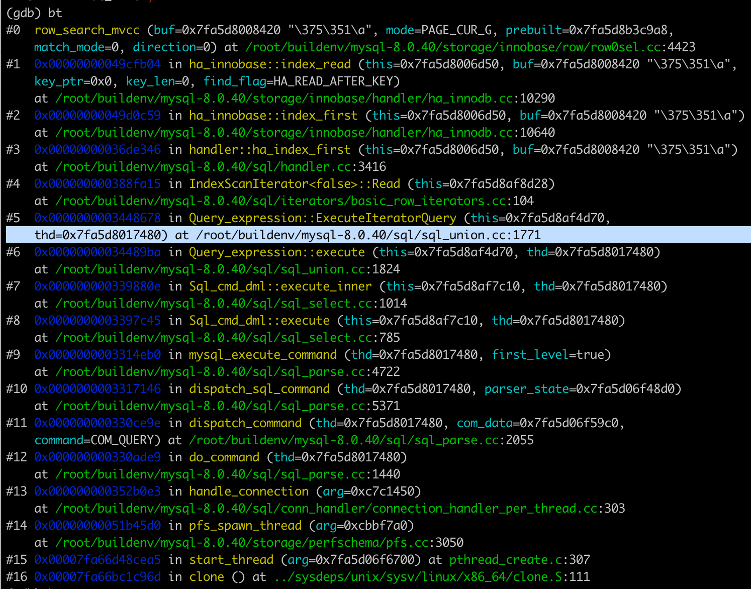 1 | (gdb) break /root/buildenv/mysql-8.0.40/sql/sql_parse.cc:1440 |