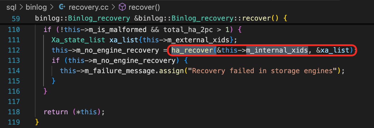 你可以试着查一下hton->recover在哪里调用。直接搜索innobase_hton->recover或hton->recover找不到调用的地方,因为在调用的地方,变量名不是innobase_hton或hton。改成搜索“->recover(”,可以找到调用的地方。