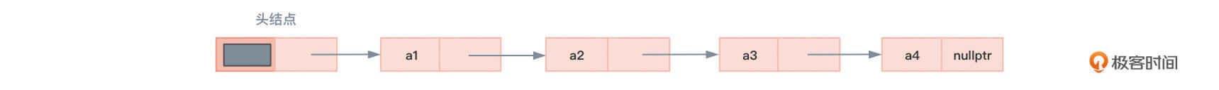 头结点的数据域可以不存储任何信息,也可以存储比如单链表长度等额外信息。头结点的指针域指向第一个节点。注意,头结点始终位于任何其他节点之前,就算我们需要向链表的首部插入节点,那插入的节点也要位于头结点之后。