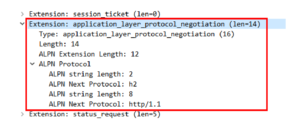 就像下图这样,最优先的是“h2”,其次是“http/1.1”,以前还有“spdy”,以后还可能会有“h3”。