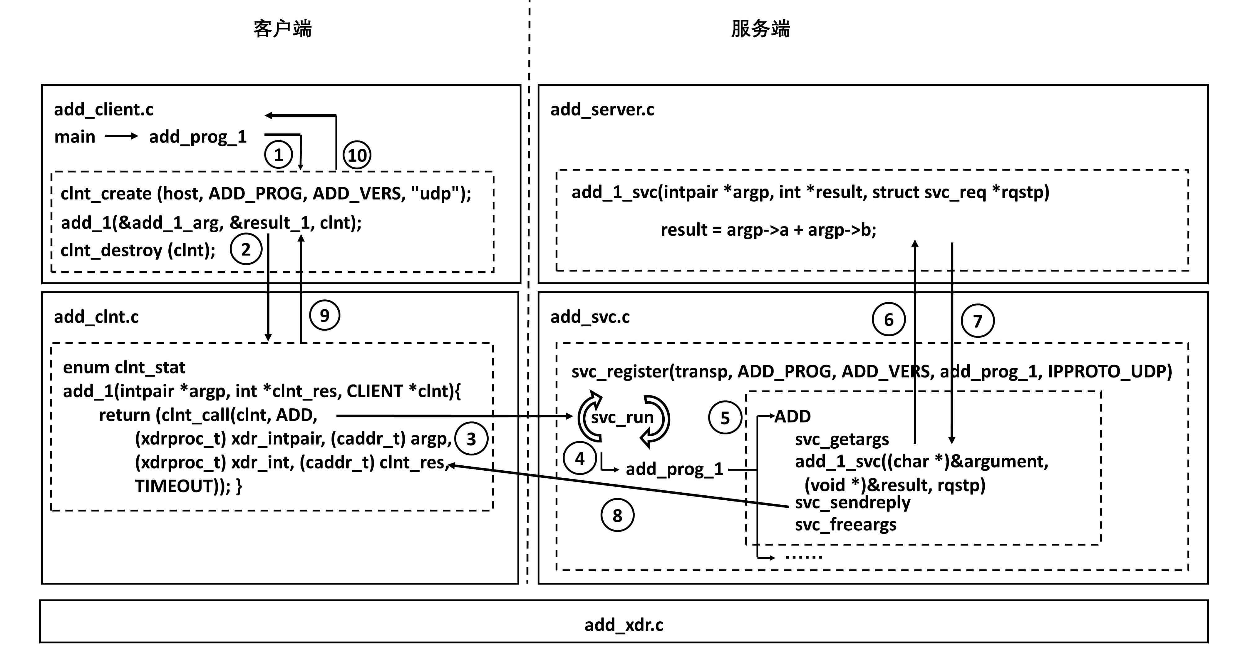 如果还是上面的加法,则双方约定为一个协议定义文件,同理如果是NFS、mount和读写,也会有类似的定义。
