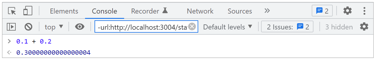 我们先来做个小实验:在Chrome开发者工具中输入0.1+0.2,得到的结果是什么?惊不惊喜,意不意外?最后的结果竟然不是0.3,后面还有$4 \times 10^{-17}$。