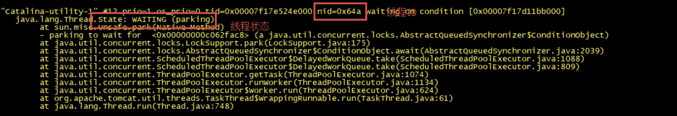 jstack最常用的功能就是使用 jstack pid 命令查看线程堆栈信息,通常是结合pidstat -p pid -t一起查看具体线程的状态,也经常用来排查一些死锁的异常。