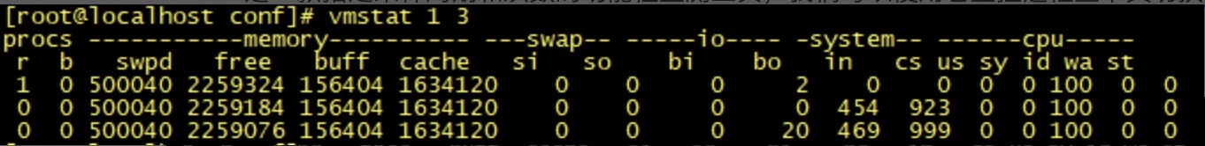 vmstat 1 3 命令行代表每秒收集一次性能指标,总共获取3次。以下为上图中各个性能指标的注释: