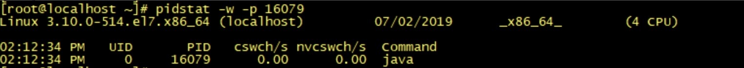 首先,通过pidstat -w -p pid 命令行,我们可以查看到进程的上下文切换: