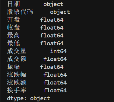 这几行代码运行后,可能会有问题,也可能没有。这是为什么呢?要解释这个问题,我们需要先来打印一下上文股票数据中日期的类型,代码如下: