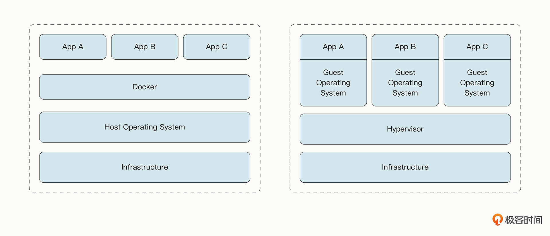 解决这一问题的一种方法是使用虚拟机技术(VM,Virtual Machine)。虚拟机是对物理硬件的抽象。协调程序的Hypervisor允许多个虚拟机在一台机器上运行。但是,每个 VM 都包含操作系统、应用程序、必要的二进制文件和库的完整副本,这可能占用数十GB。此外,每个操作系统还会额外消耗 CPU、RAM和其他资源。VM 的启动也比较缓慢,难以进行灵活的迁移。