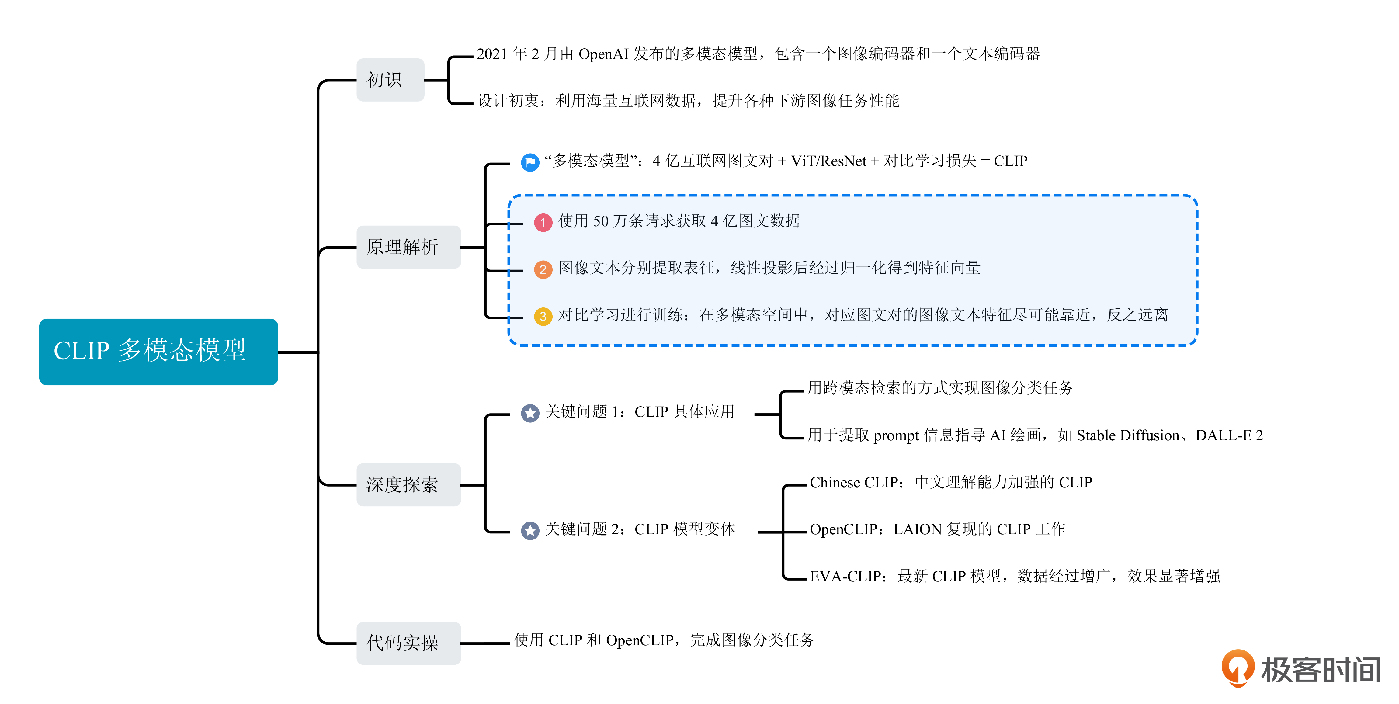 后面的课程里,我们还会学习DALL-E 2模型,它在CLIP的基础上进一步扩展,提出unCLIP结构,不仅能够用文本指导图像生成,还能输入图像生成多个相似变体。