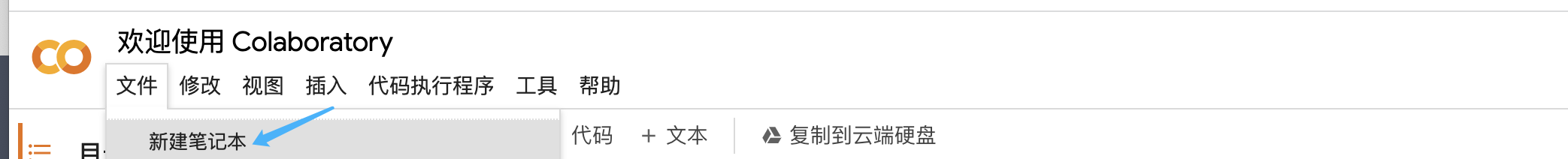 注册好Google账号以后,你可以访问文稿后面这个链接。进入后点击文件菜单下面的新建笔记本。