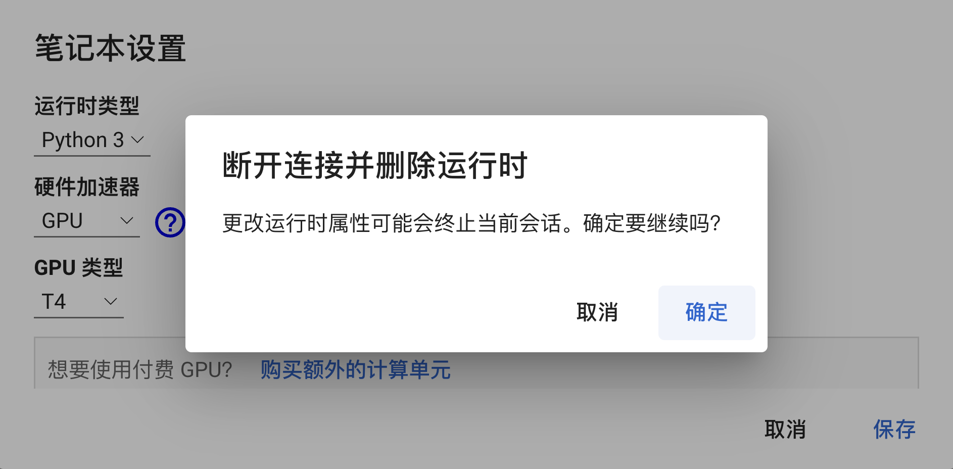 之后,我们需要连接GPU环境。点击左上方的修改选项,选择笔记本设置。使用GPU作为硬件加速器,并完成一系列确认操作。
