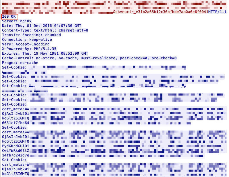 Server: nginx,由此得知,云LB后面的这个Server是Nginx。 - 返回的头部信息也比较大,有很多个Set-Cookie。
