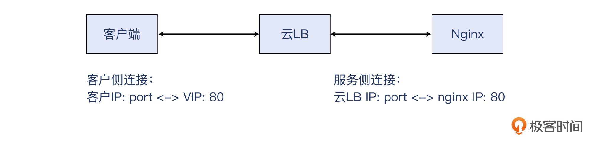 - 服务侧连接:云LB内部IP <-> 云主机Nginx内部IP。