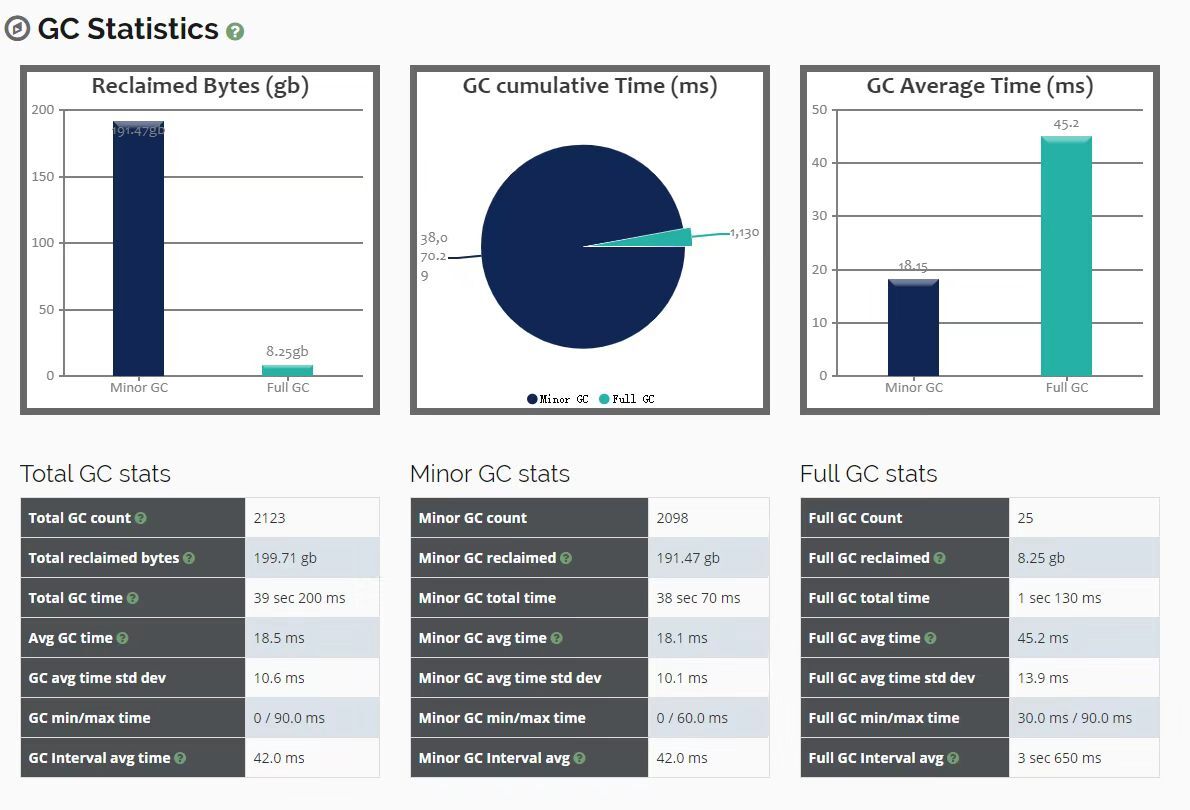 这里我再推荐一个比较好用的GC日志分析工具,GCeasy是一款非常直观的GC日志分析工具,我们可以将日志文件压缩之后,上传到GCeasy官网即可看到非常清楚的GC日志分析结果: