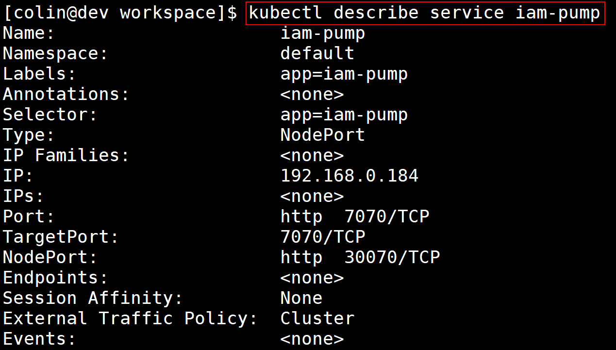 kubectl describe service iam-pump命令获取iam-pump详细信息的命令行截图: