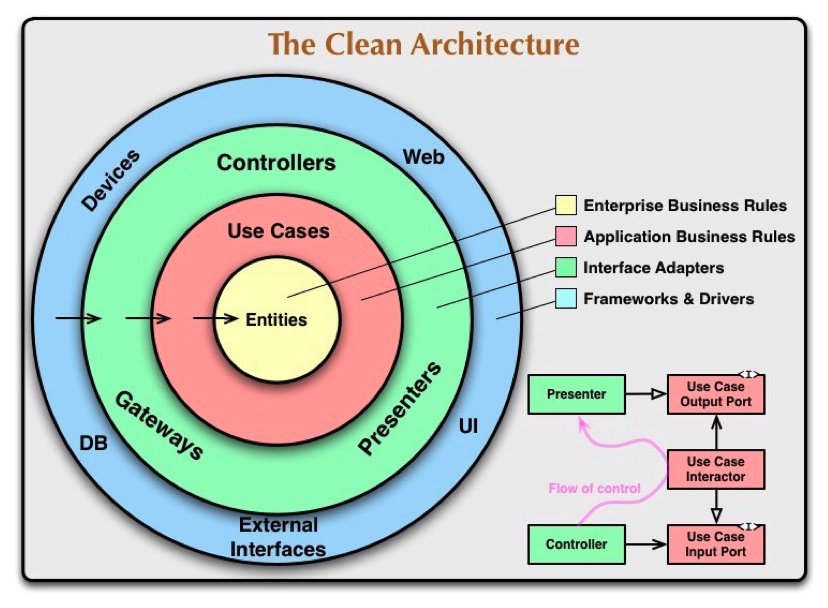而相比MVVM架构,Clean架构则是一种更加抽象的思维模式了。它将整个架构大致分为三层,由外到内分别是:表现层、领域层、数据层。它们之间的依赖关系也是由外到内的。